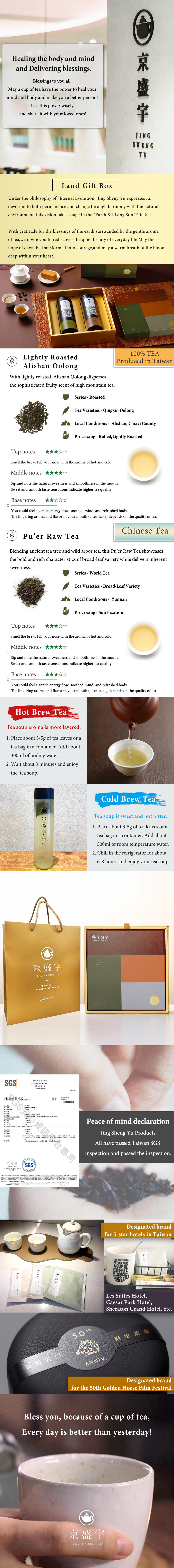| Product Shelf Life | Lightly Roasted Alishan Oolong-1095 days Pu’er Raw Tea-1095 days |