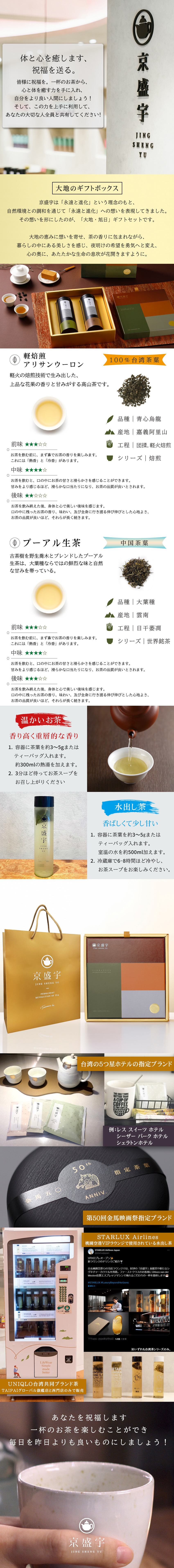 | 賞味期限 | 軽焙煎アリサンウーロン-製造日より36ヶ月 プーアルなまちゃ-製造日より36ヶ月 |