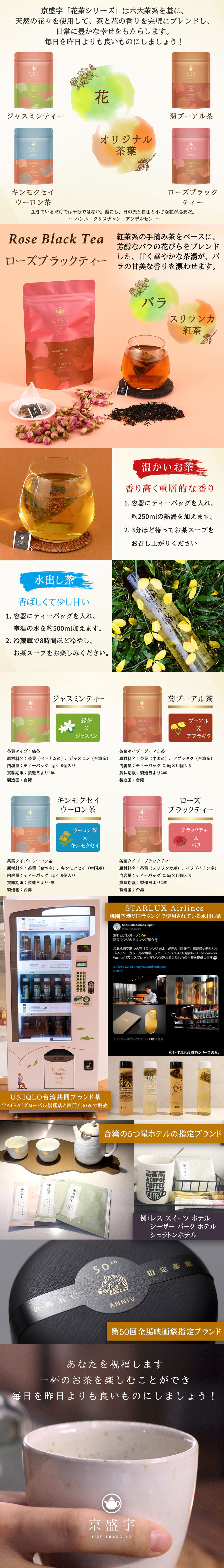 紅茶系の手摘み茶をベースに、芳醇なバラの花びらをブレンドした、甘く華やかな茶湯が、バラの花の甘美な香りを漂わせます。