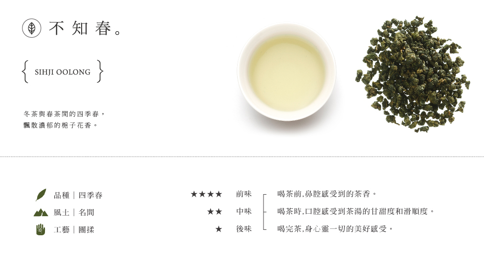 冬茶季と春茶季の間の四季春、濃厚芳醇なクチナシの香りがします。