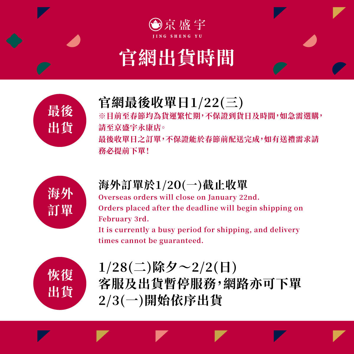 親愛的顧客您好,適逢農曆春節假期到來,官網出貨時間將做調整