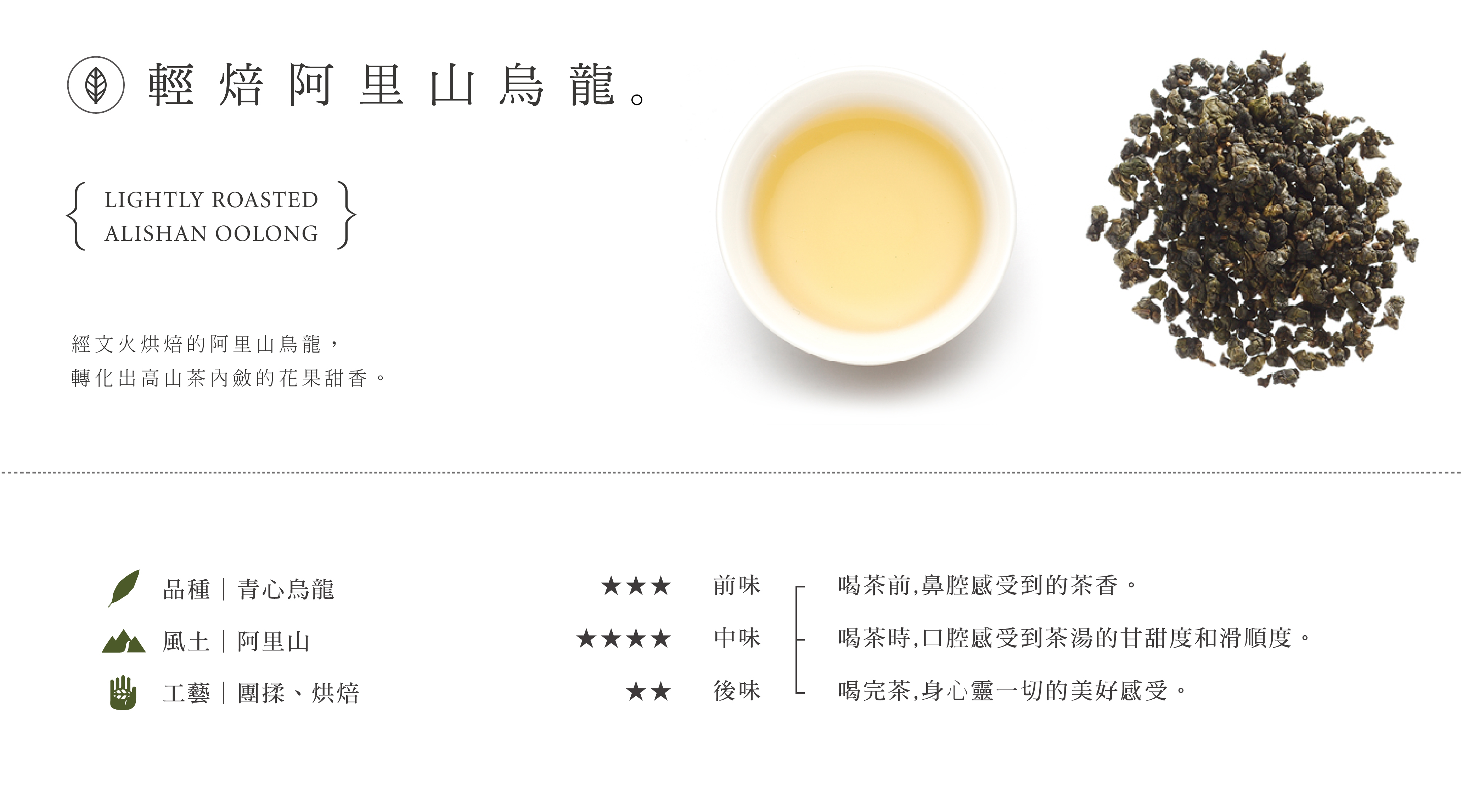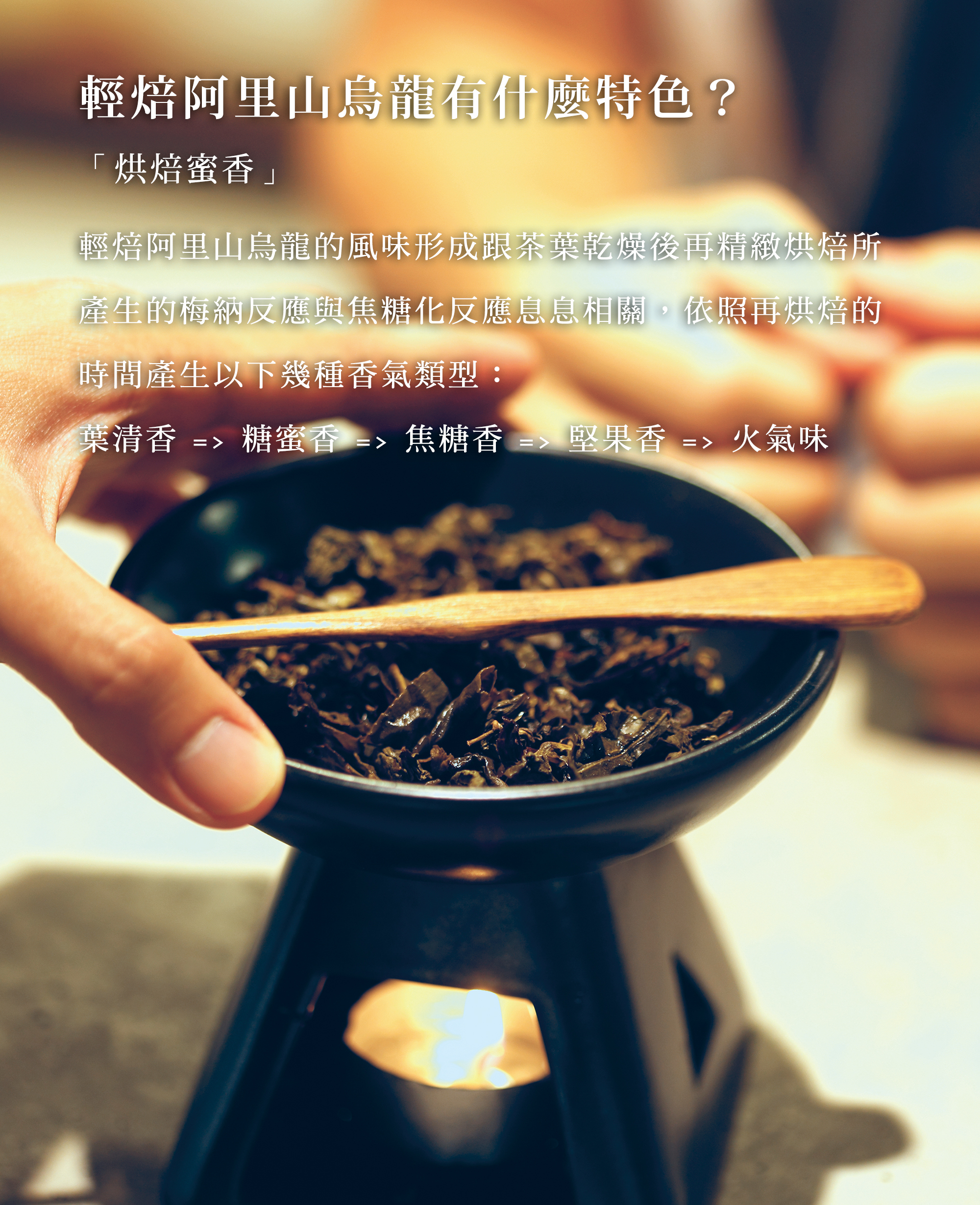 葉清香 => 糖蜜香 => 焦糖香 => 堅果香 => 火氣味