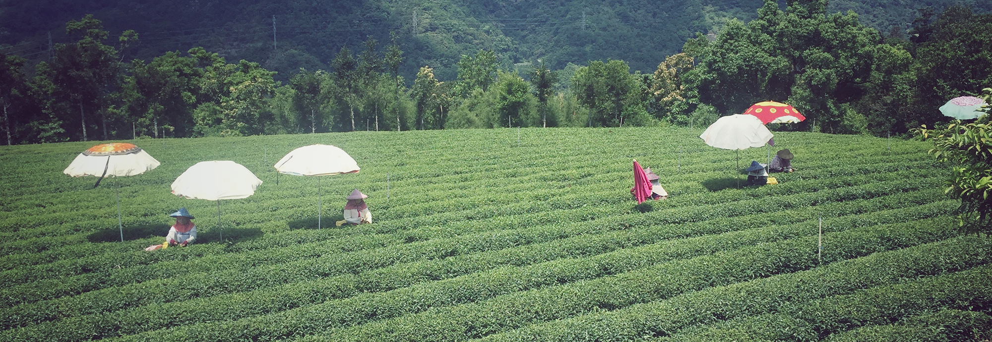 夏天的茶園非常炎熱,大家都戴著斗笠、包得緊緊的,不讓一絲一毫皮膚有機會被陽光炙燒