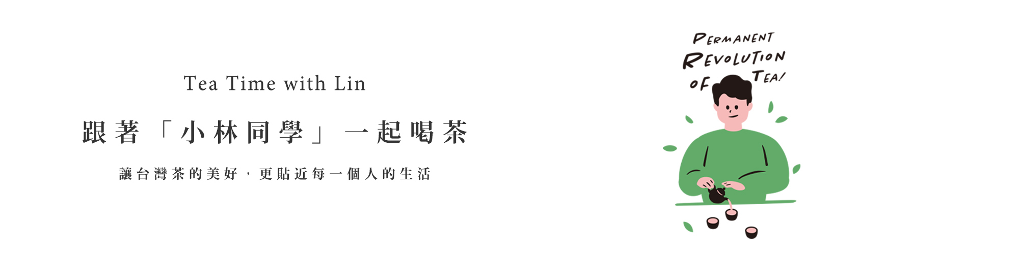 13年過去了,小林一路走來,跌跌撞撞,但很感恩得到大家的支持與幫忙,讓小林依舊可以很勇敢地做同一件事:「讓台灣茶的美好,更貼近每一個人的生活」,小林衷心期盼,在他的努力下,這世界上再也沒有一個人,會覺得一杯茶好困難、好麻煩、好花時間,因為小林深信:這片土地上最純淨、最美好的風味,應當是親切沒有距離的。