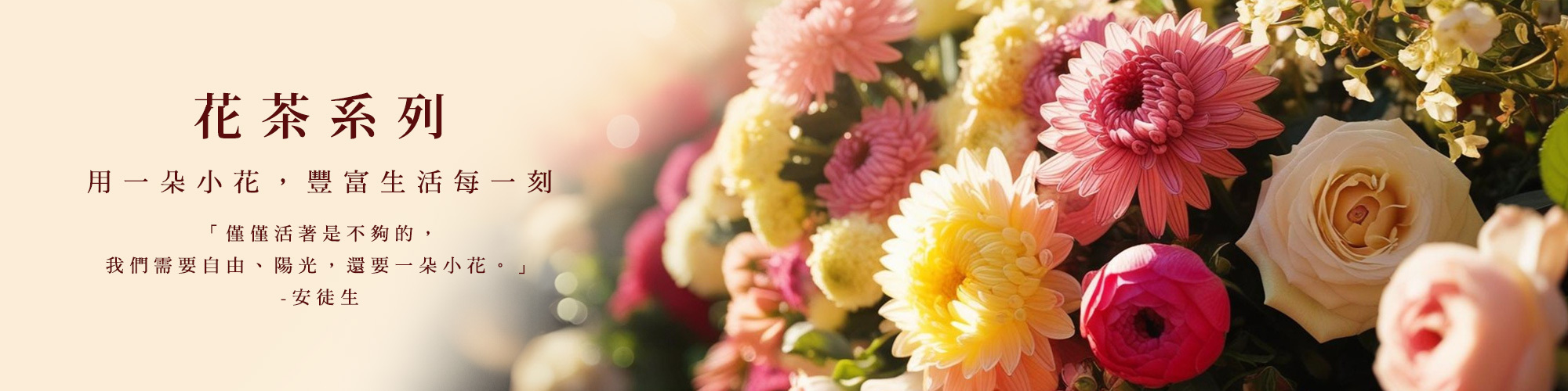 窨製工法目前會做的老師傅紛紛凋零,且成本很高,為了能夠讓消費者能夠更輕鬆地品嘗花茶,我們選用了六大茶系做為基底(綠茶、青茶、紅茶、黑茶),搭配適合風味的花,希望讓喝茶能夠更加療癒身心。