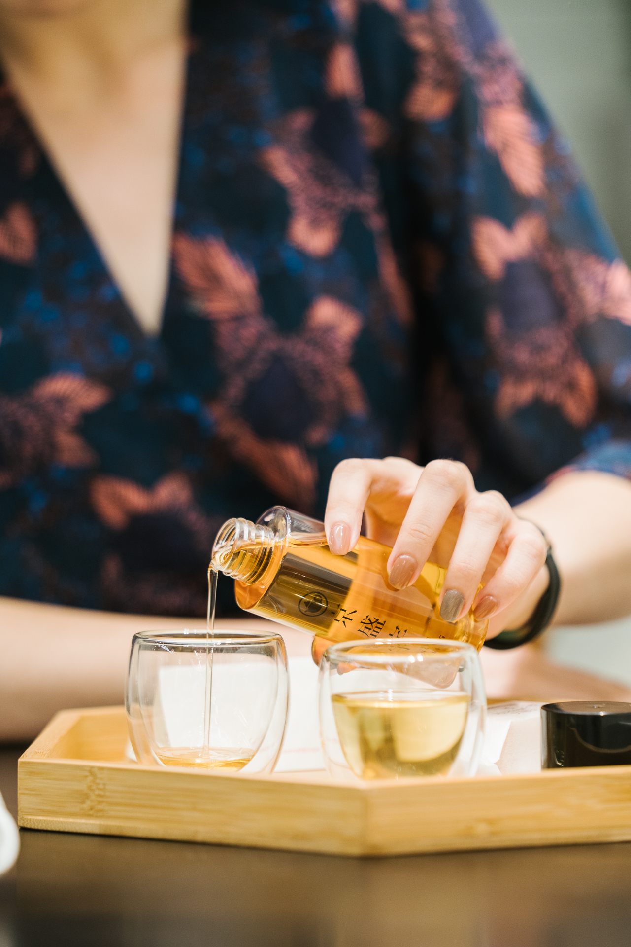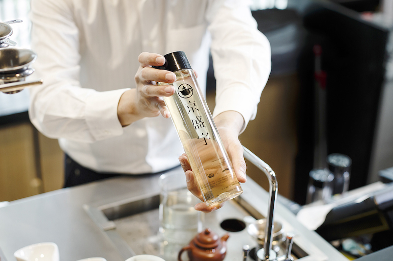 由於茶都是現泡,所以會需要等3至5分鐘。如果選擇坐在茶吧台的座位區,可以看到茶藝師用小小的個人紫砂壺,現場手沖,將熱茶倒入可以承受高溫變化的燒杯,彷彿透過一場實驗,一泡一泡呈現出台灣茶的好。