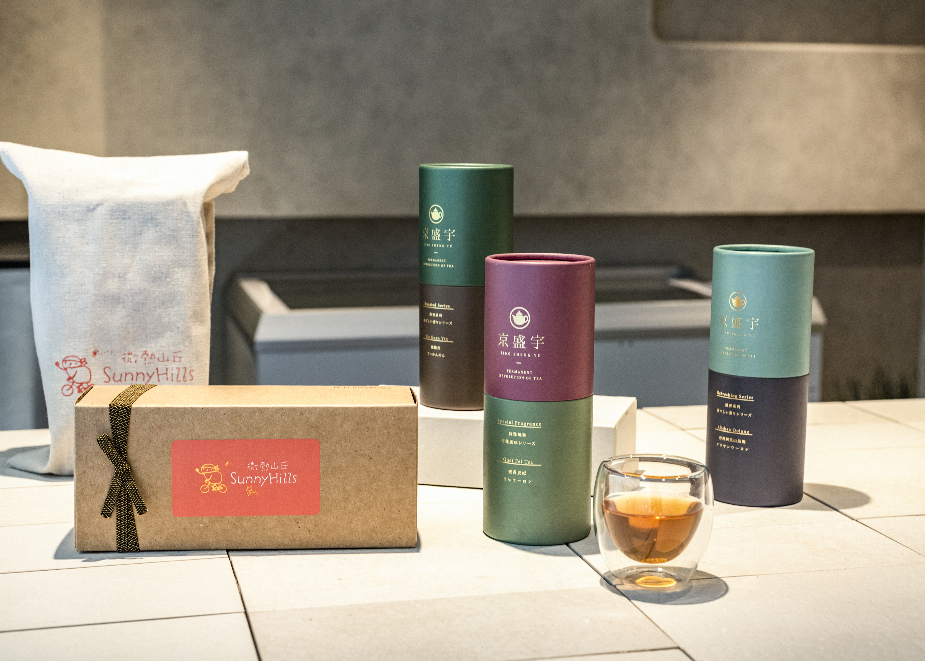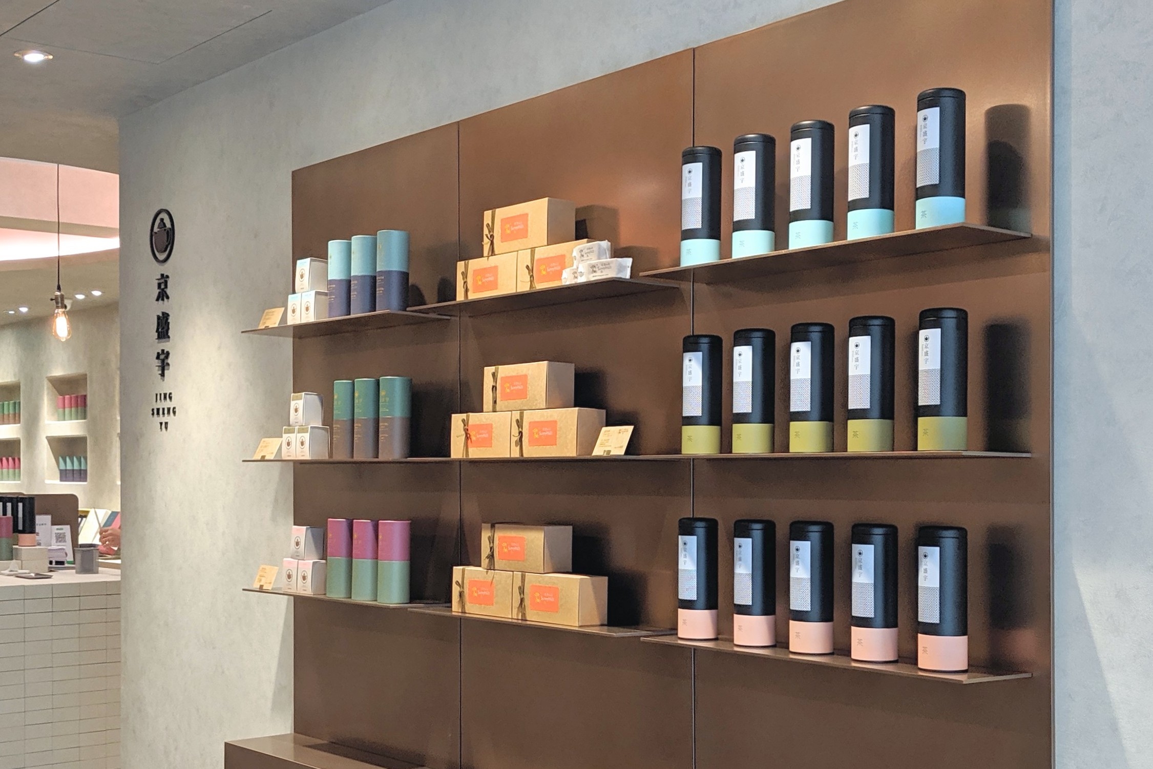 3. 在京盛宇永康概念店內,可選購的商品種類介紹,包括茶葉、袋茶、微熱山丘茶點