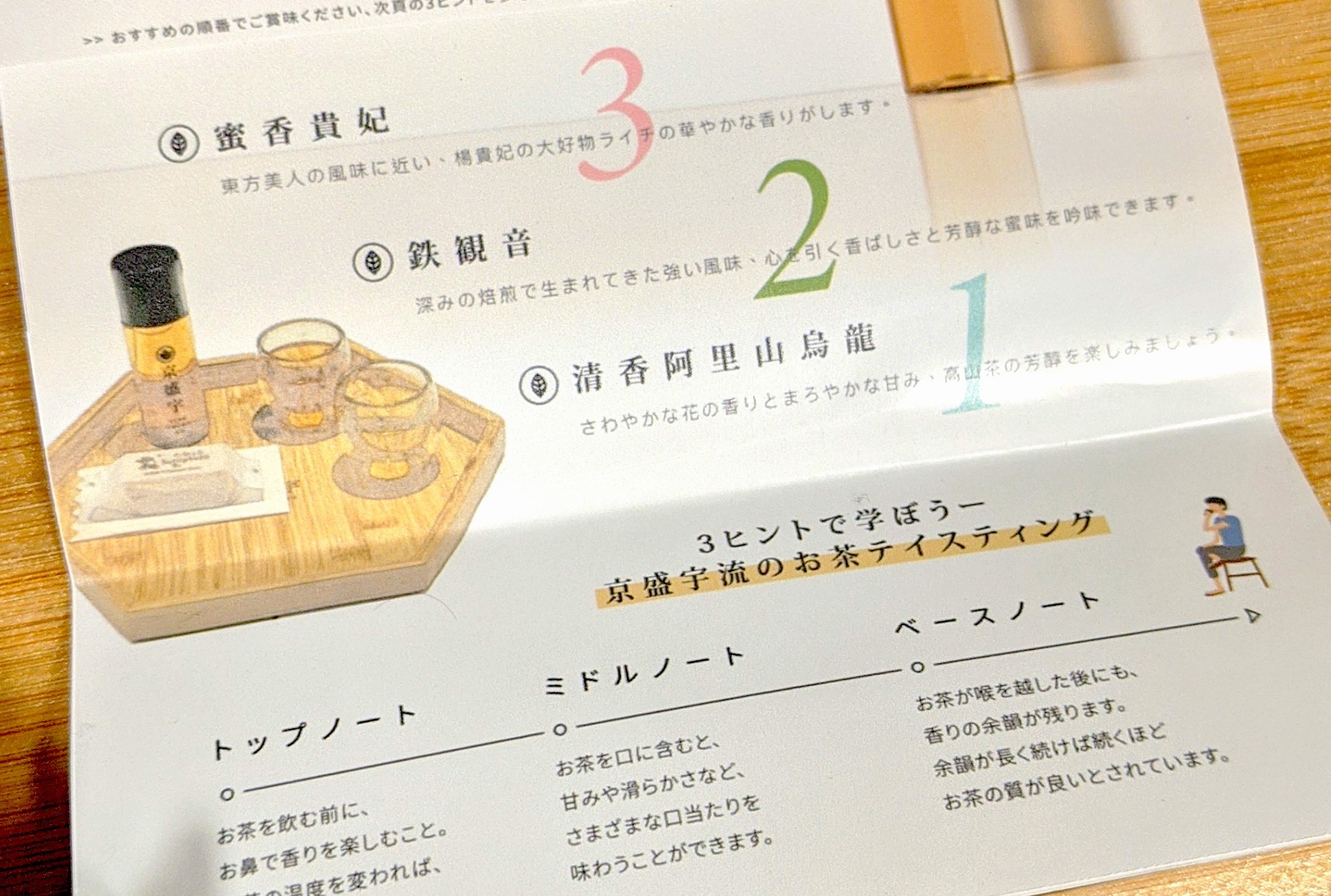 六角盤上會有一張小卡,有三杯茶的品茶順序建議,還有品茶的三步驟教學,瞬間從「喝茶」升級到「品茶」!