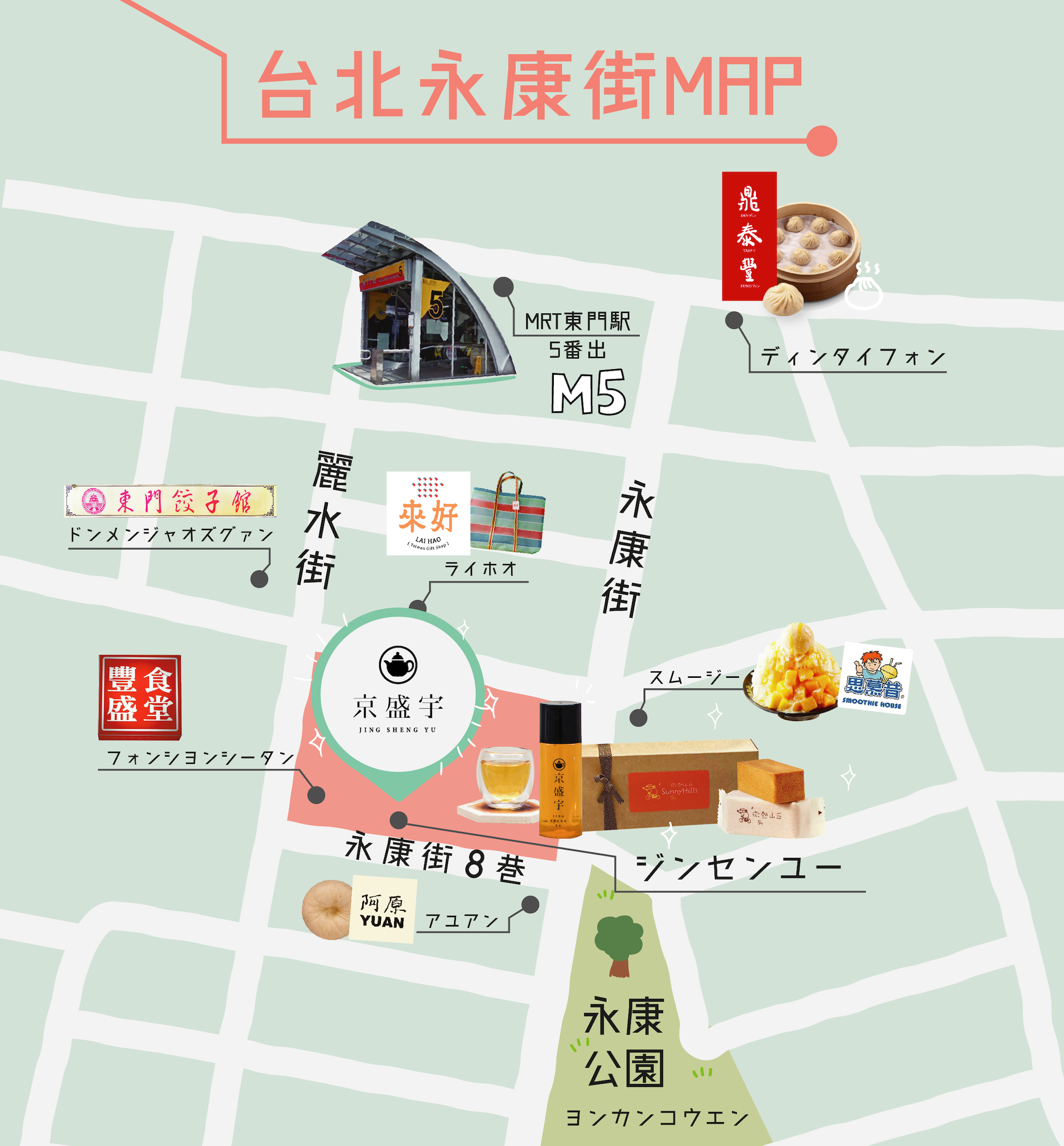 首先,京盛宇永康概念店位於台北永康街8巷巷弄內,就在永康公園的旁邊,在知名禮品店「來好」的隔壁條巷子,如果從永康街走來,巷口是阿原肥皂,如果從麗水街走來,巷口是豐盛食堂,轉個彎進來就會看到了。