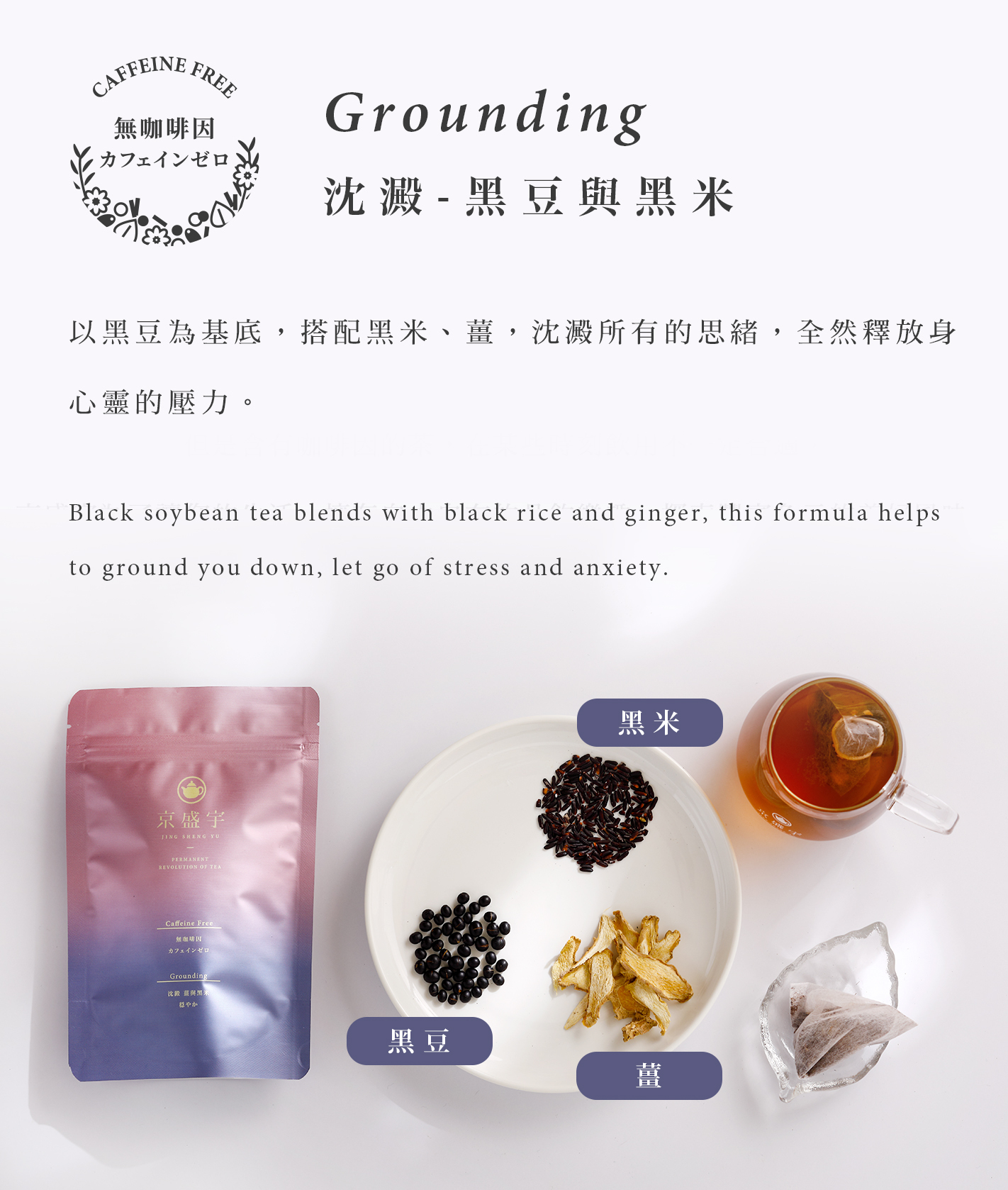 以黑豆為基底,搭配黑米、薑,沈澱所有的思緒,全然釋放身心靈的壓力。