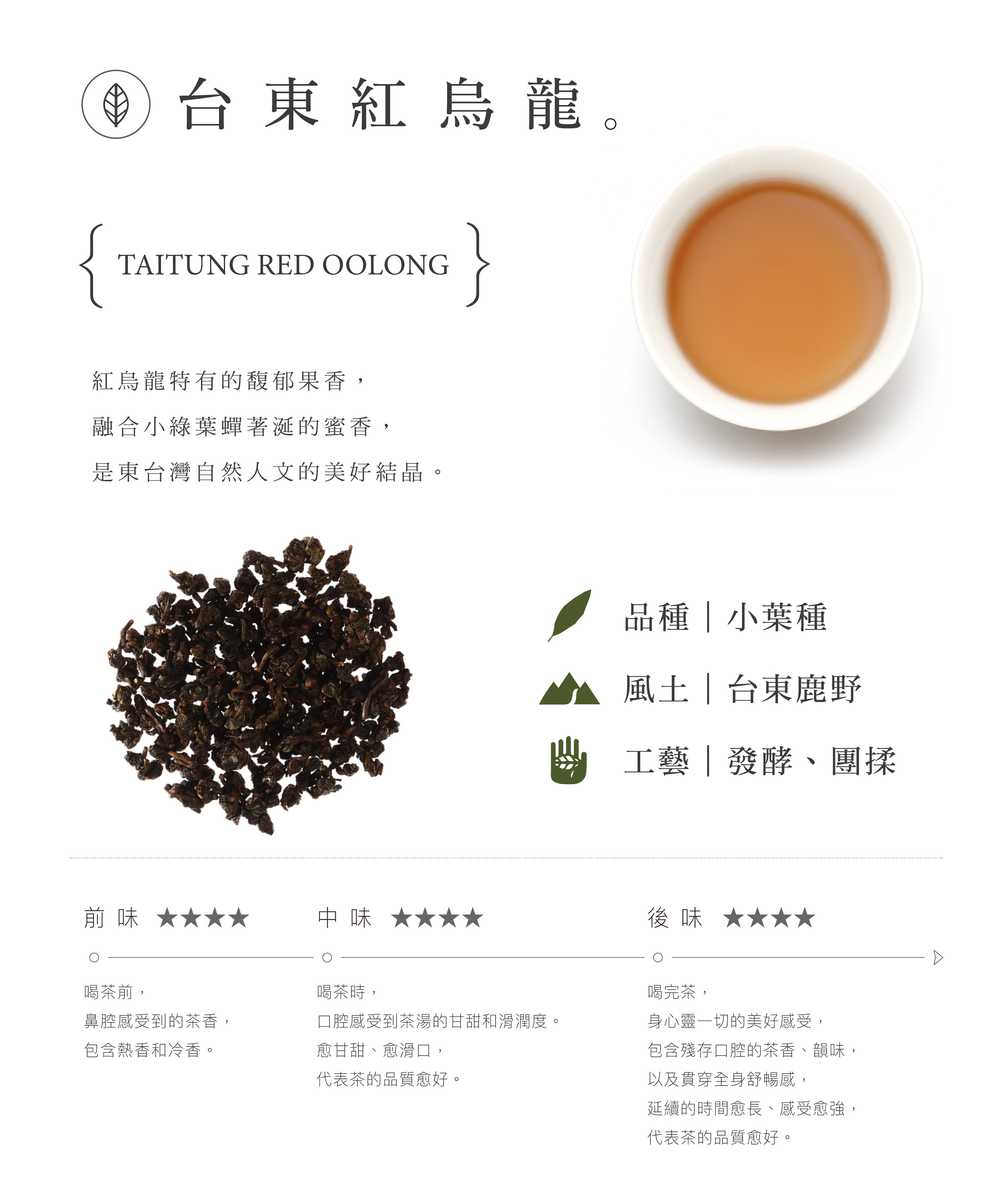 紅烏龍特有的馥郁果香,融合小綠葉蟬著涎的蜜香,是東台灣自然人文的美好結晶。