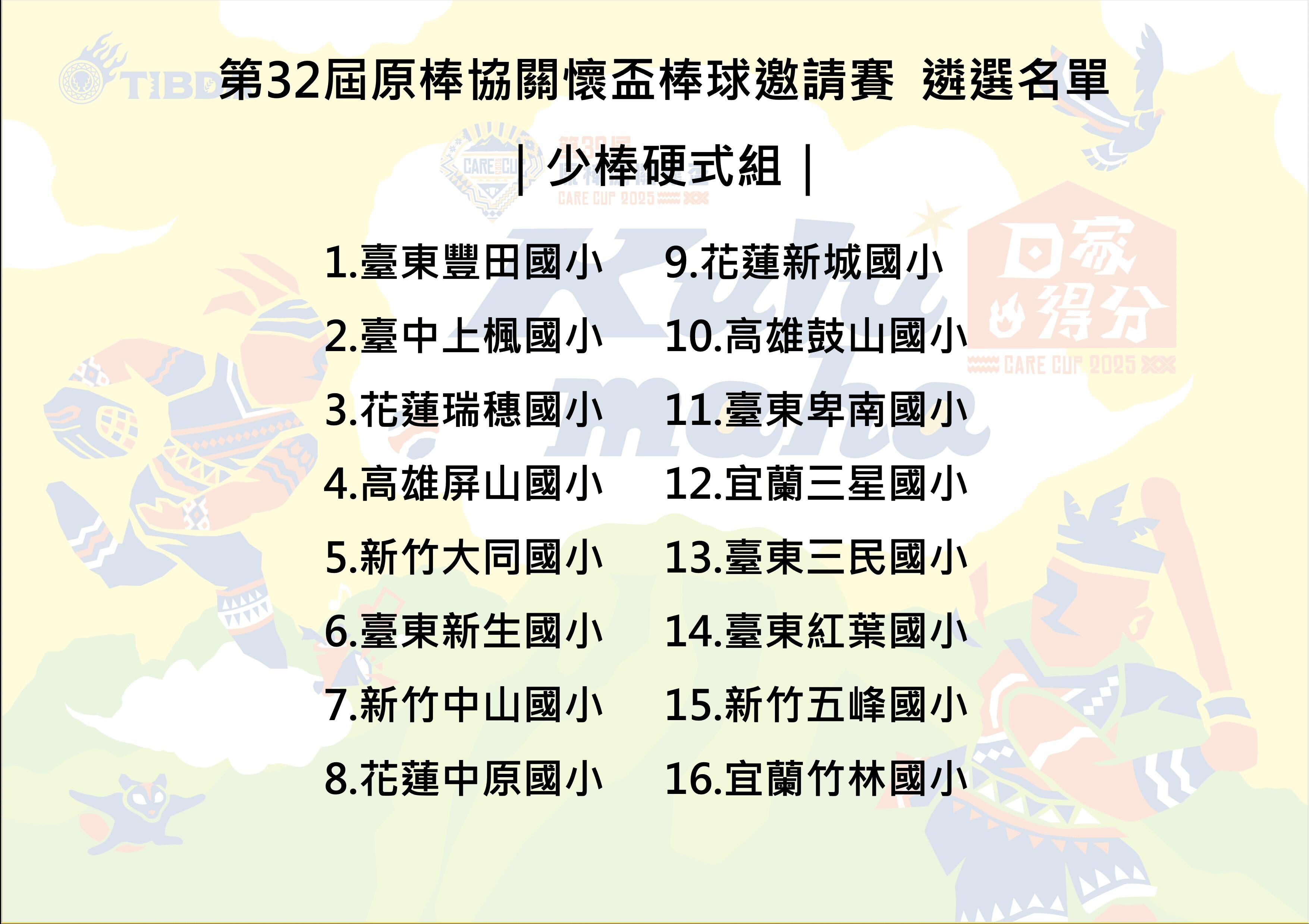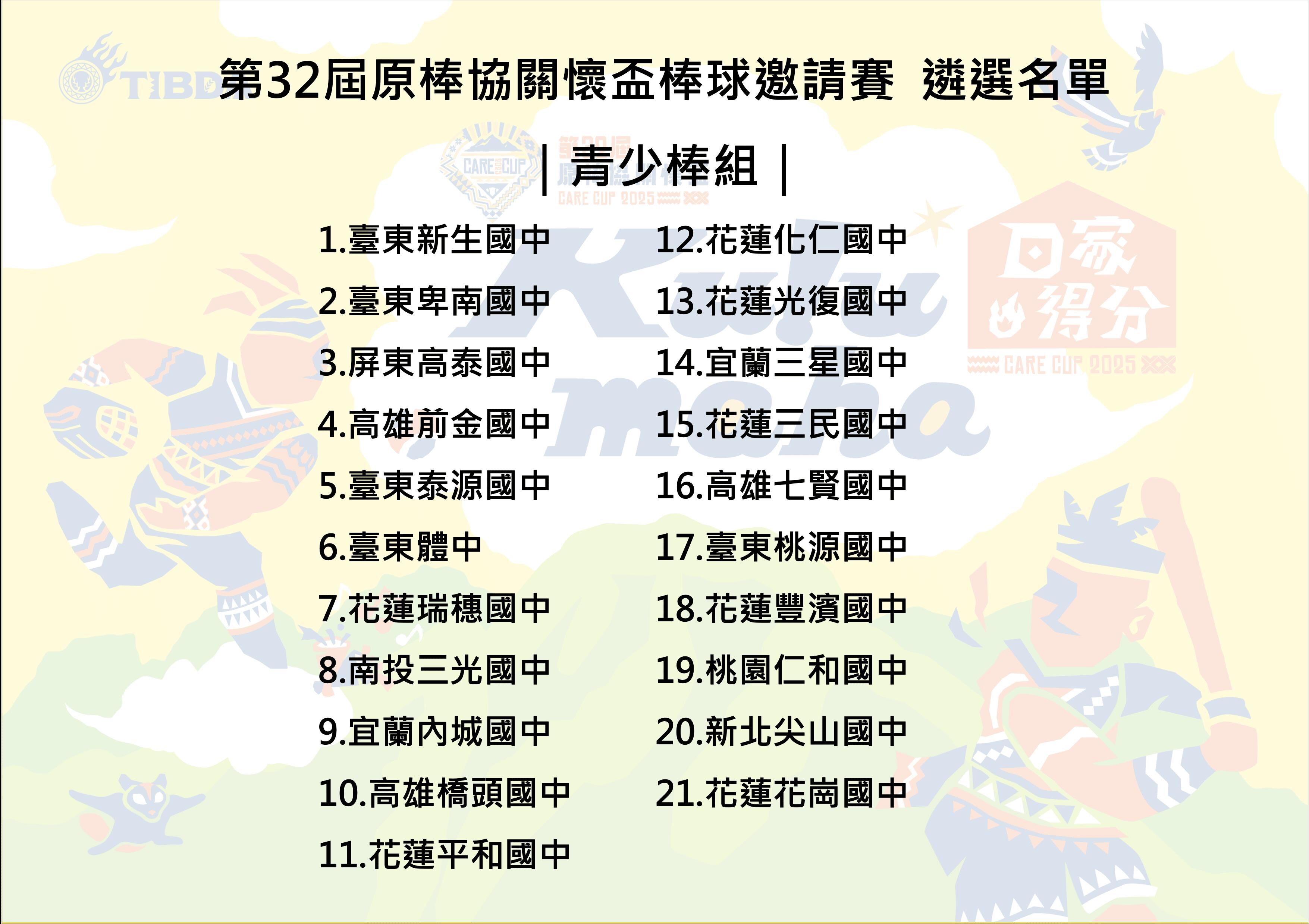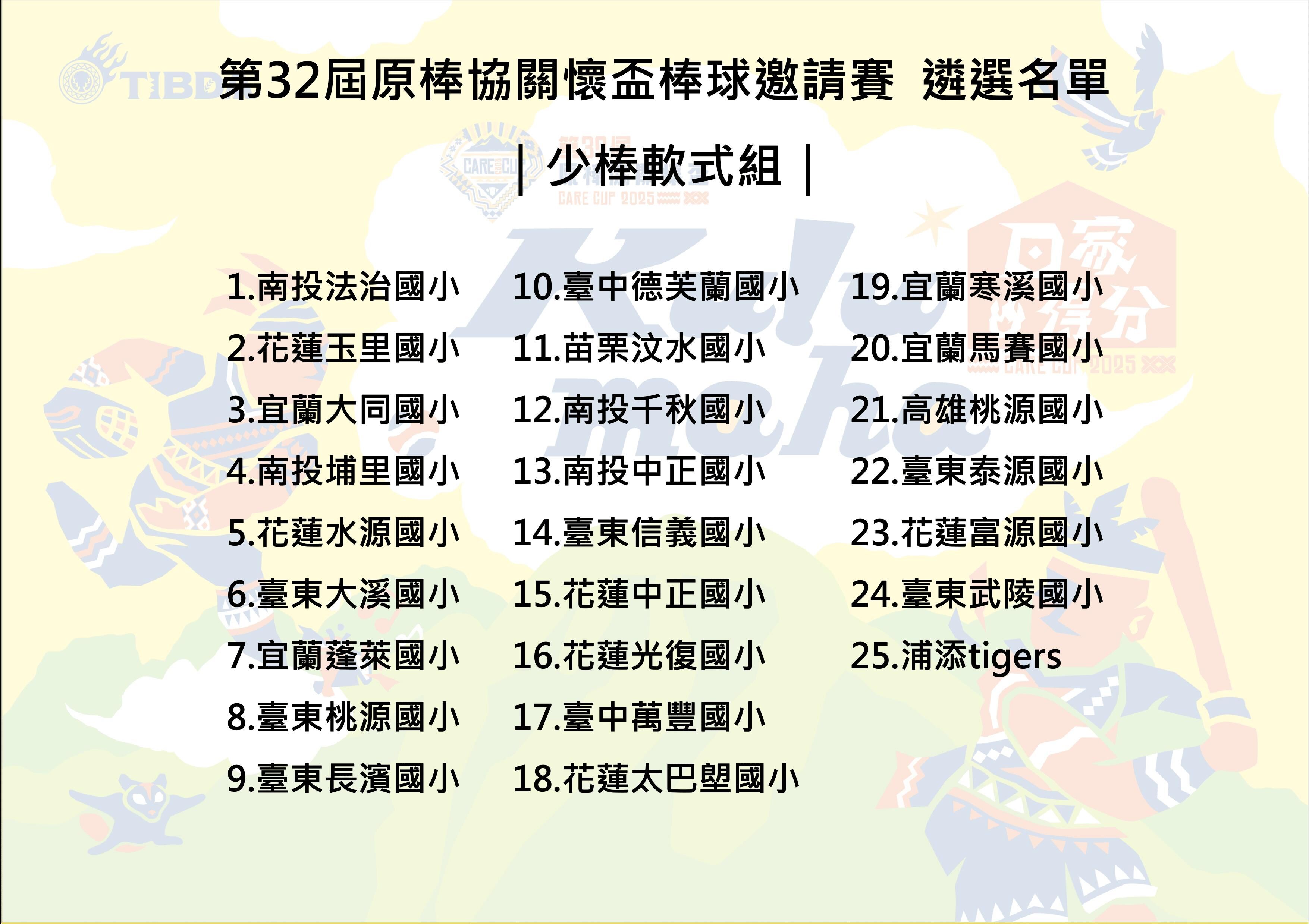 第32屆關懷盃將於 2025年11月28日至12月1日 在花蓮盛大舉行,共有 62支少棒與青少棒隊伍參賽。希望大家可以一起到花蓮享受這一年一度的基層棒球嘉年華。