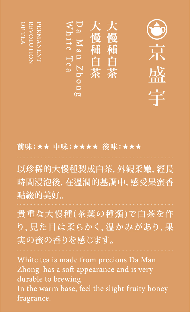 | 品名 | 期間限定品-珍稀茶款|大慢種白茶 |