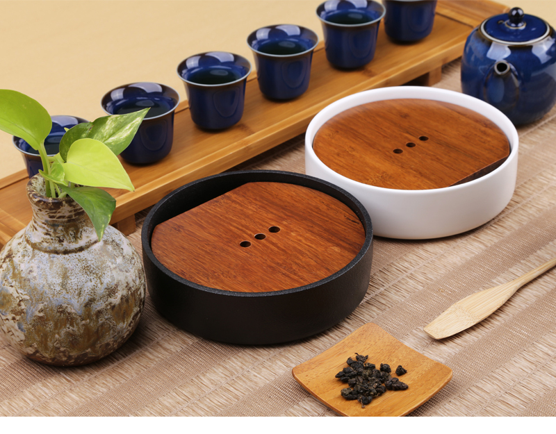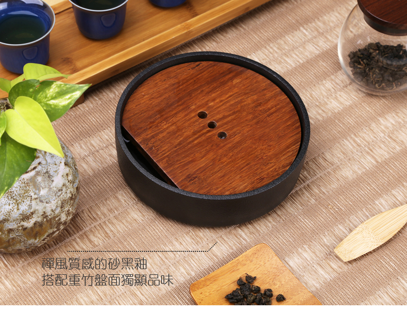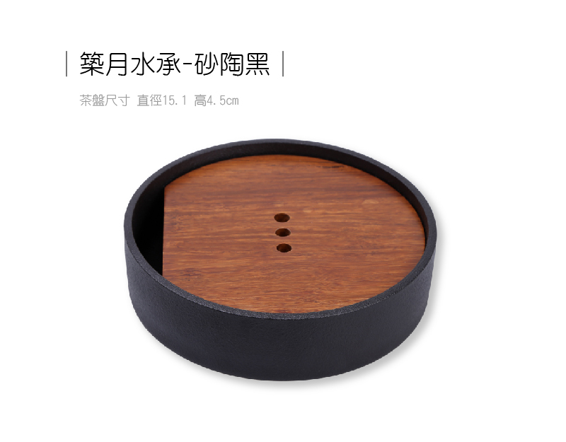 築月水承-砂陶黑(Φ15.3 x 4.5 cm)|茶席專用乾泡盤